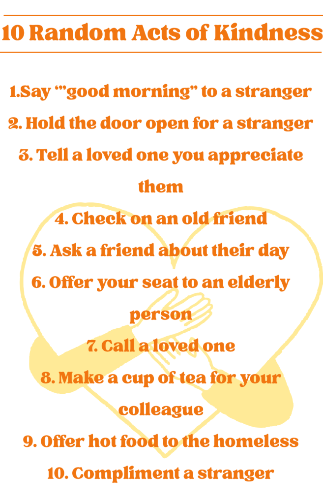Did you know that practising Random Acts of Kindness can boost your mood, improve your health, and even help you live longer? Research consistently shows that daily acts of kindness not only strengthen communities but also enhance our own emotional well-being. These small, selfless actions have a truly significant impact — for both the giver and the receiver.